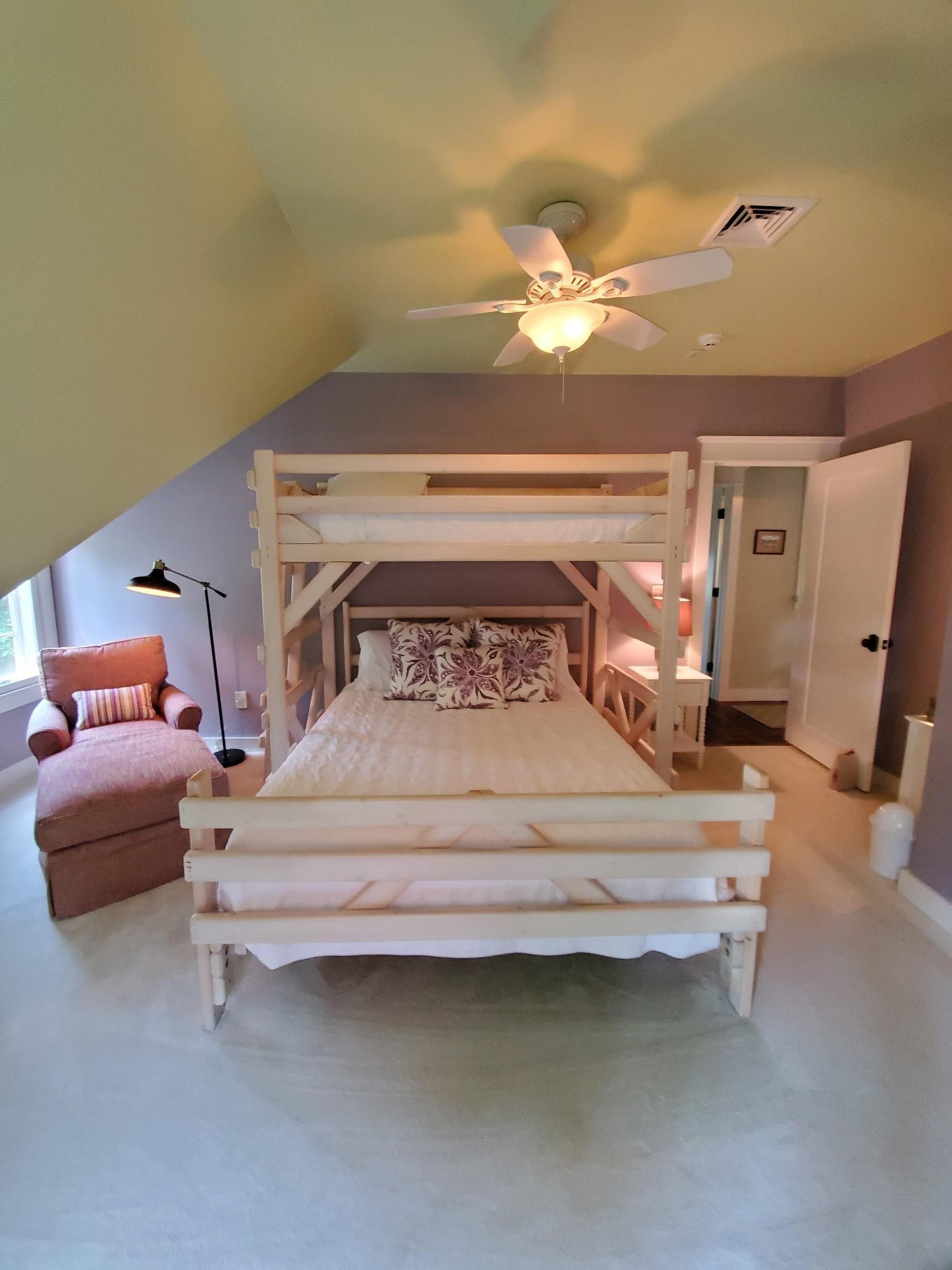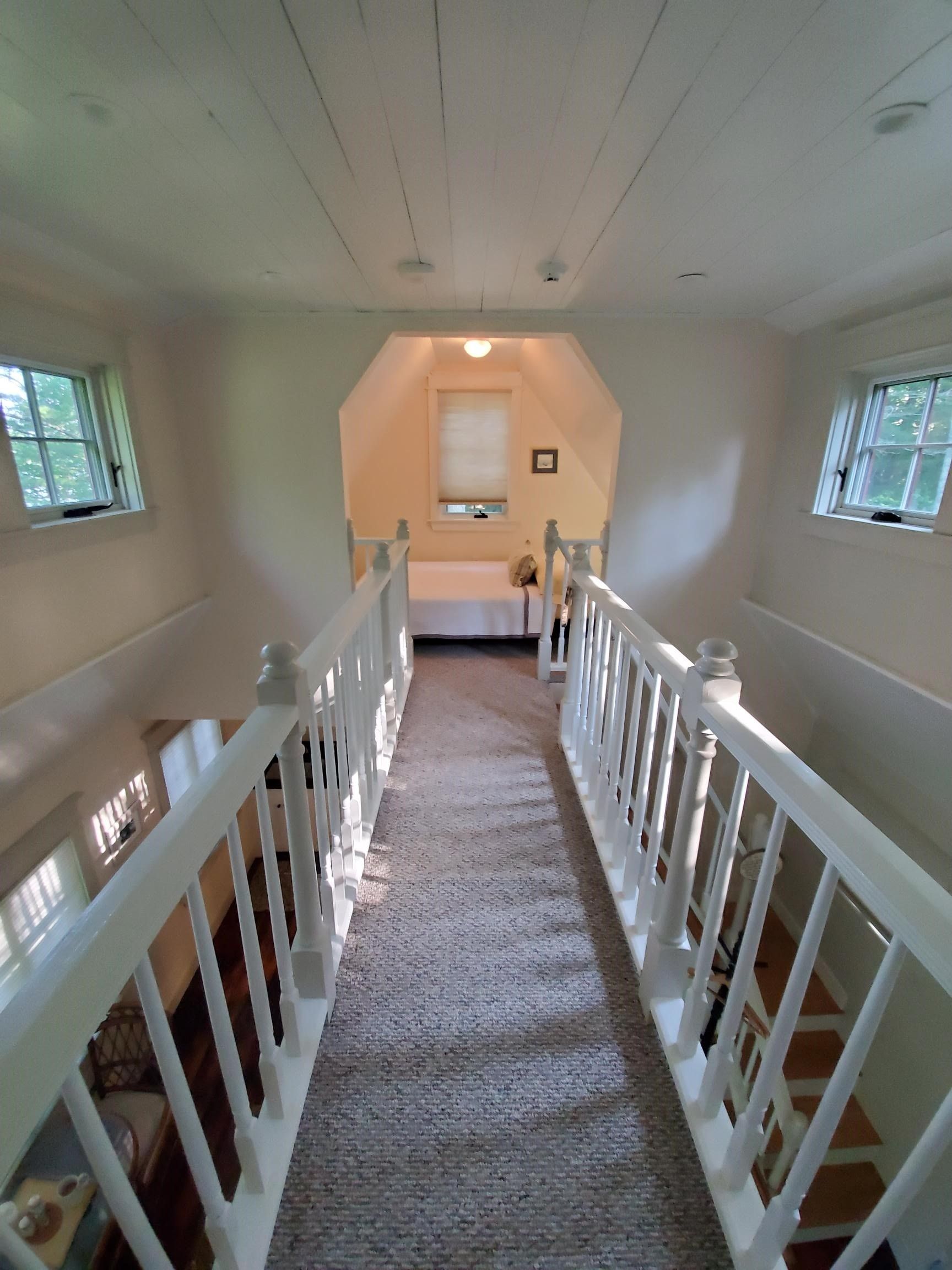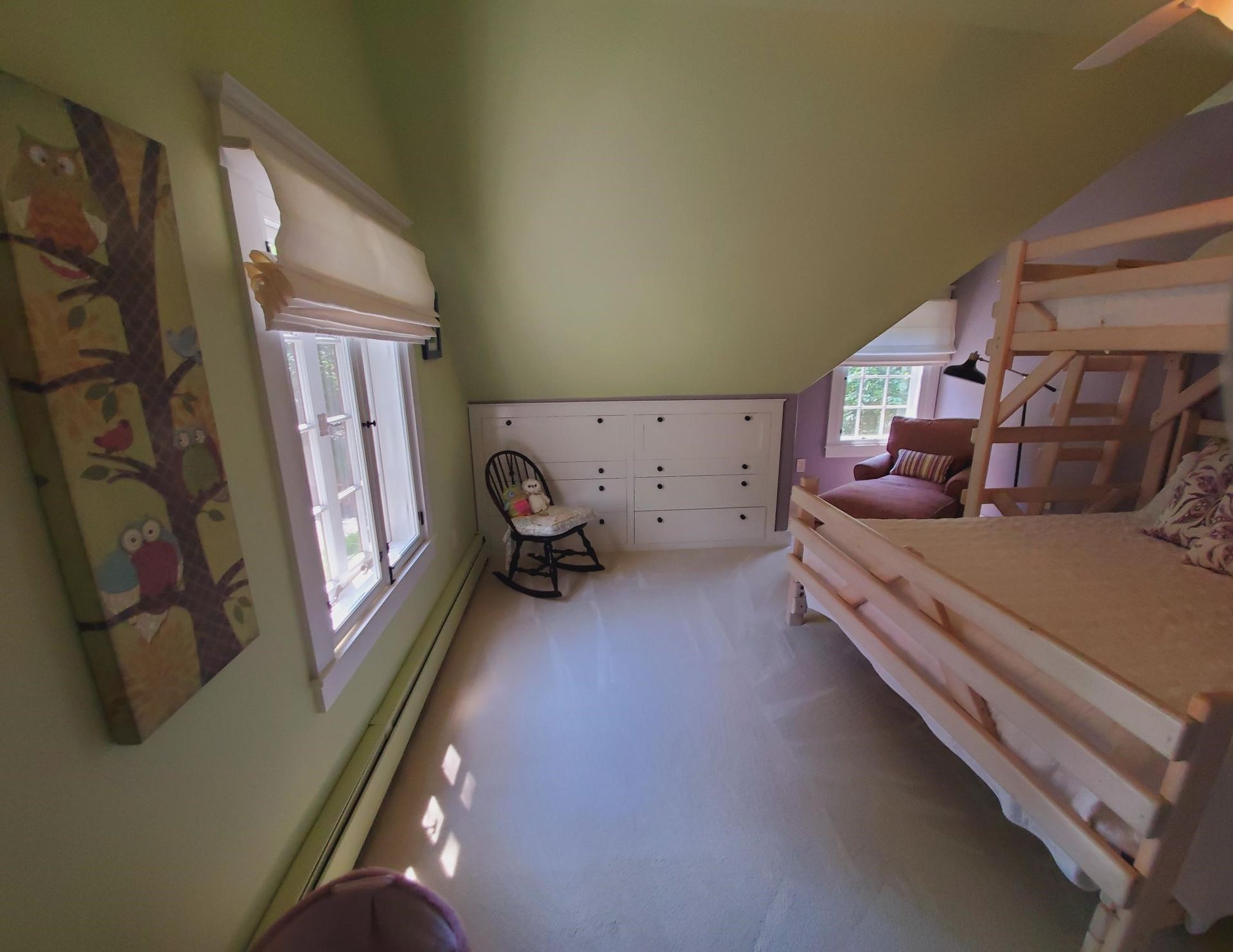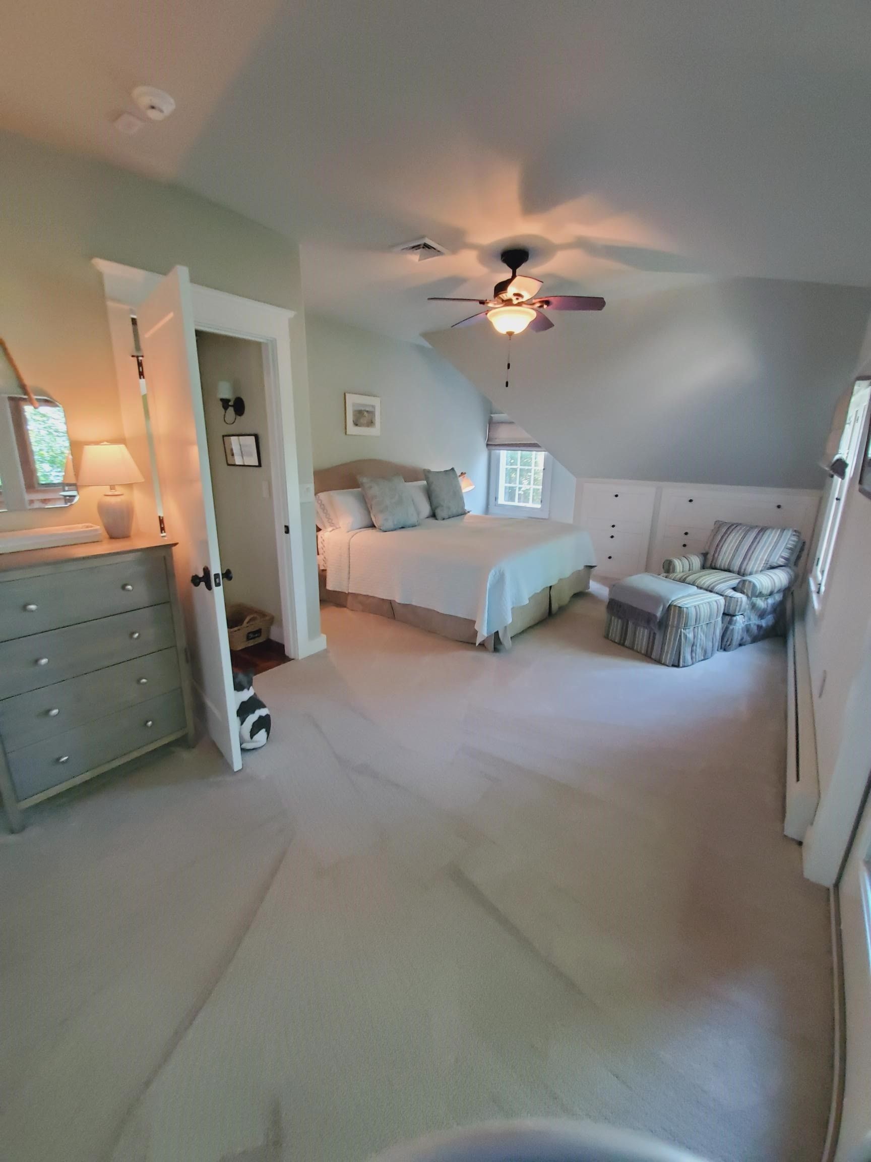 This vacation rental in Massachusetts has four bedrooms, two bathrooms, and two half bathrooms. It can accommodate up to 10 guests, with a luxurious master bedroom that has a large deck overlooking the water, and a sleeping loft that is delightful for kids. A large garage/recreational area lends itself to watching movies or sports games on the Roku together, or giving teenagers a place for independence. This room has a custom-built bar, additional washer and dryer, large screen TV, pool, ping pong table, and exercise equipment. Head outdoors and settle into an Adirondack chair on the decks and patios, gather around the fire pit and roast marshmallows, or take a soak in the hot tub. There are also three kayaks on the property (one double and two singles) for exploring the lake just beyond, and a moored sailboat that experienced guests may take out. The 400-square-foot guest cottage nearby is also available for rent for additional guests. Where history meets modern conveniences, this pristine piece of New England shines as both charming and grand.
